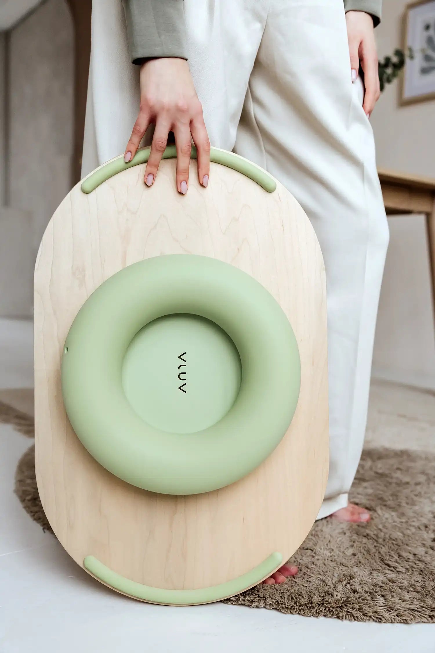 VLUV VIPPA bestaat uit gelaagd multiplex van berkenhout en een met lucht gevulde flexring van ftalaatvrij PVC. Zachte siliconen bumpers zorgen voor een geruisloos gebruik en beschermen zowel de vloer als het board. Alle kunststof onderdelen zijn recyclebaar en ontworpen voor een lange levensduur.